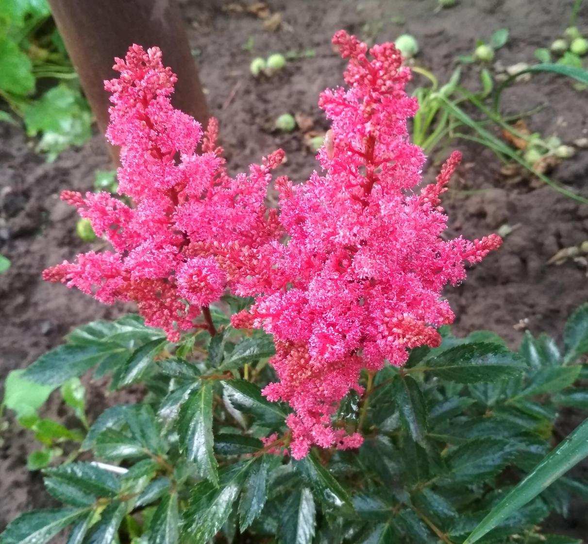 Астильба гибридная Санни дей (Sunny Day), высаженная живописной группой в тени кроны деревьев, создадут яркий островок, благоухающий медовым ароматом. У растений этого сорта очень крупные и плотные метельчатые соцветия насыщенного малиново-красного оттенка. Мельчайшие бутоны с длинными тычинками, покрывающие цветонос астильбы, создают эффект пышного облачка. Ажурная зелёная листва добавляет растению воздушности. Высота Астильбы гибридной Санни дей всего 40 сантиметров, на долю цветоносов приходится половина этой длины. Наблюдать чарующее цветение можно с середины июня по конец июля.