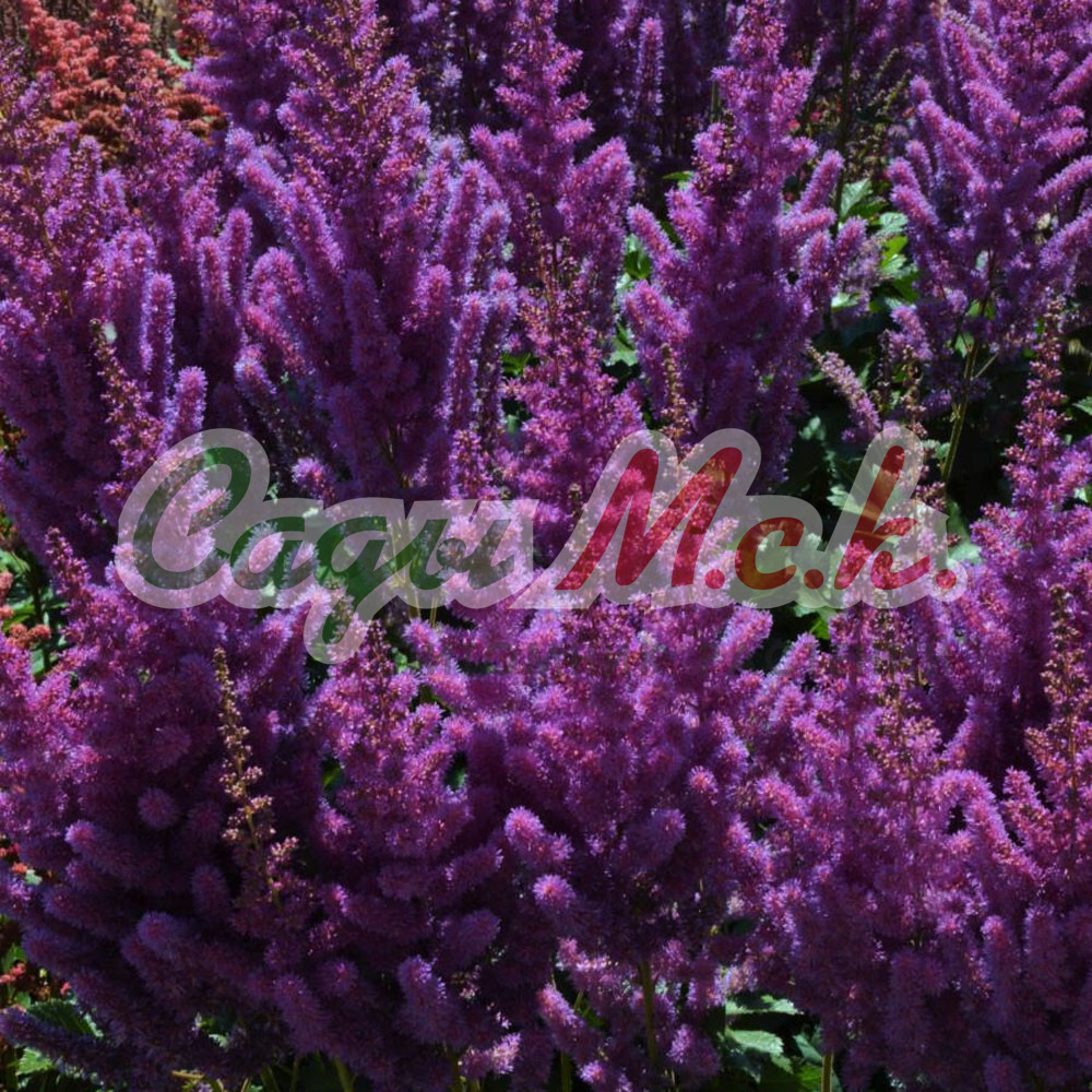 Астильба китайская Блэк Перлз (Black Pearls) в переводе имеет название «Чёрная жемчужина», сорт редок и прекрасен, подобно драгоценности. На высоких цветоносах образуются пышные ромбовидные метёлки ярко-пурпурного оттенка и распространяют неповторимый тонкий аромат. Тёмно-зелёная листва у подножия растения лишь подчёркивает сочный цвет бутонов. Высота астильбы 60 сантиметров. Один куст образует до 6 цветоносов высотой до 80 сантиметров. Соцветия Астильбы китайской Блэк Перлз распускаются в июне, оставаясь декоративными на протяжении месяца.