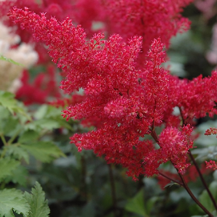 Астильба японская Монтгомери имеет красновато-бурую листву и пышные алые соцветия. Во взрослом состоянии он способен достигать высоты в 60 см. и расти в условиях тени или полутени. Не рекомендуется высаживать его под прямыми солнечными лучами, поскольку растение может не выдержать жары и погибнуть. Растет он достаточно быстро, не выносит сухой климат. Из-за этого рекомендуем высадить Астильбу японскую Монтгомери рядом с искусственным или природным водоемом, это решит вопрос влажности почвы и воздуха. Если же водоема на участке нет, то придется часто поливать растение.