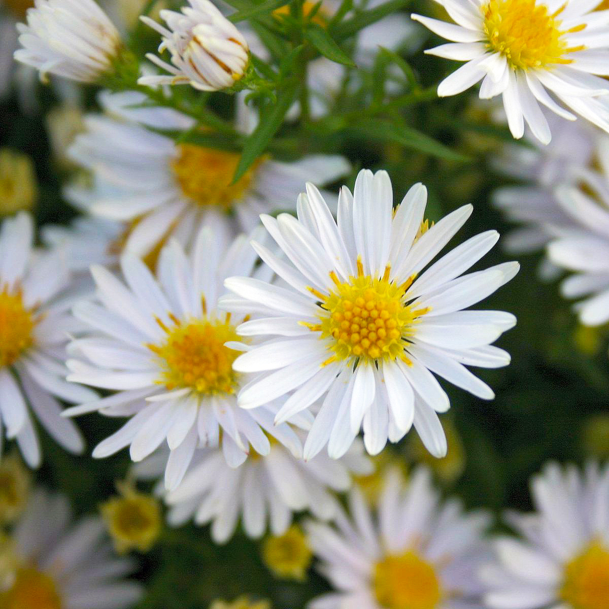 Астра кустарниковая Аполло - многолетний, морозостойкий сорт. Стебли прямостоячие, сильно ветвистые, до 30 см высотой. Кустики почти полушаровидные. Цветет очень обильно, белоснежными мелкими цветками. Период цветения: август-сентябрь. Астра кустарниковая Аполло плохо растет в сухих и жарких местах, сырых мест не переносит. Почвы необходимы плодородные, щелочные, местоположение солнечное. При хороших условиях выращивания могут покрывать большие площади. При сыром и холодном лете цветение сокращается.