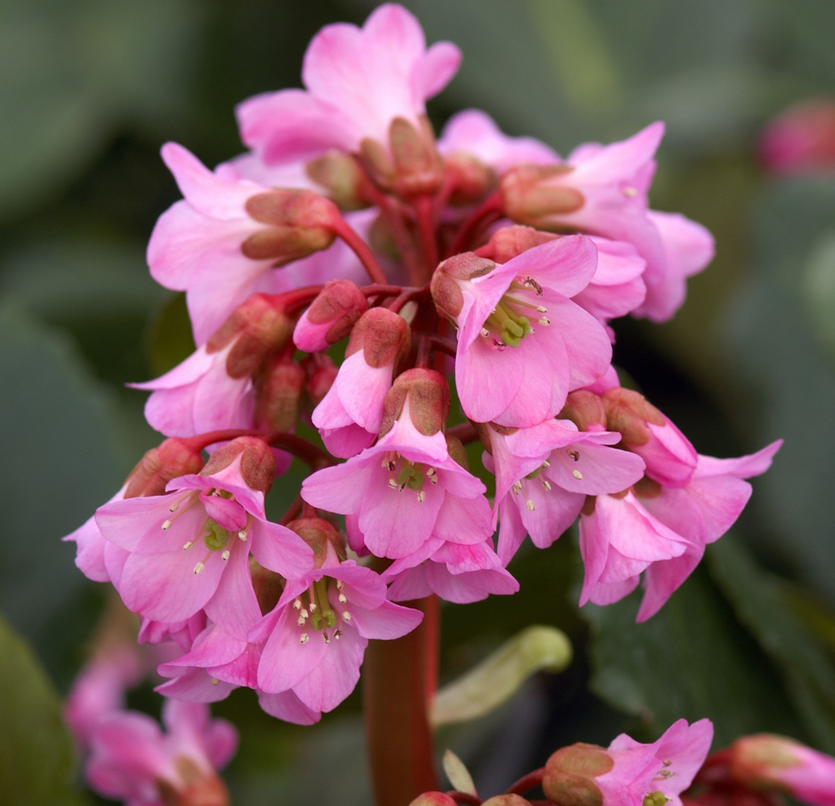 Бадан гибридный Мэджик Джайнт (Magic Giant) - растение, высота которого достигает до 40 см. Листья зеленые с пурпурным оттенком. Цветет в мае-июне, цветки розовые на красных цветоносах. Хорошо растет как на солнце, так и в тени, к почвам не требователен, не выносит застоя воды. Высаживать Бадан гибридный Мэджик Джайнт лучше на каменистых участках