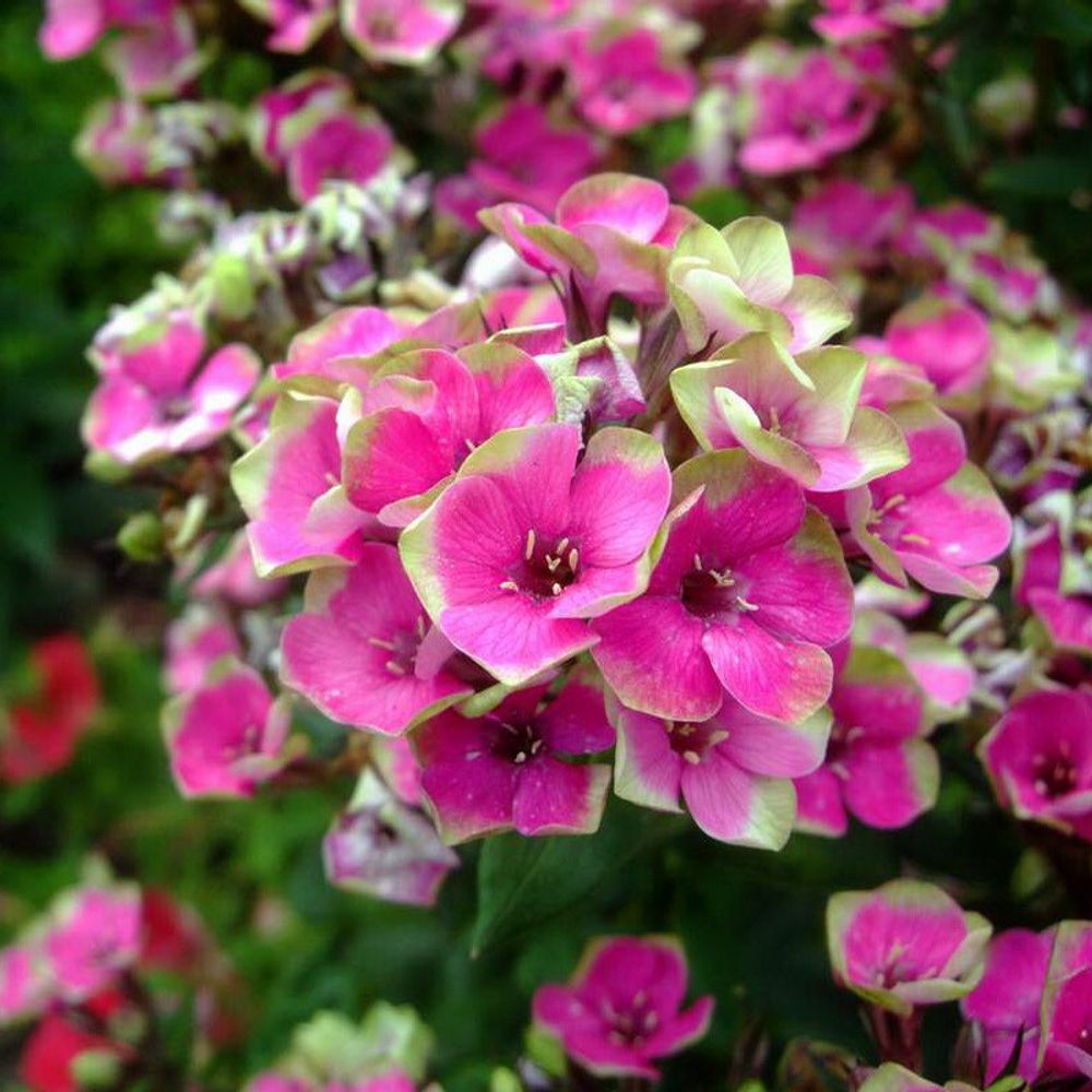 Флокс метельчатый Ауреоле (Phlox paniculata) – изящное сочетание нежности и очарования. Венчики окрашены в яркий цвет фуксии с нежной желто-зеленой окантовкой. Флоксы метельчатые отличаются от других сортов самым продолжительным и длительным цветением и, кроме того они неприхотливы, зимостойки, не требуют укрытия для зимовки. Кусты не распадаются даже после непогоды, а плотные соцветия не теряют декоративности.