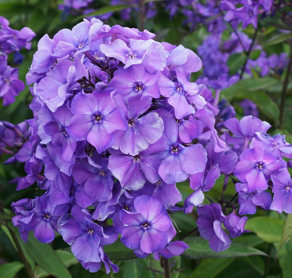 Флокс метельчатый Блу Парадайс (Phlox paniculata) полюбился многим садоводам из-за своей морозостойкости, неприхотливости в уходе, и широкой палитре насыщенного голубого цвета с пурпурными или синеватыми оттенками. В зависимости от погоды и условий освещенности растение может менять свою цветовую гамму даже в течение дня. Цветки размерами около 3-5 см формируют округло-конические соцветия и радуют своим сладким приятным ароматом на протяжении июля-августа. Для роста крепких и плотных кустов Флокса метельчатого Блу Парадайс высотой 100-120 см, их нужно высаживать в плодородный грунт в места с рассеянным солнечным светом.