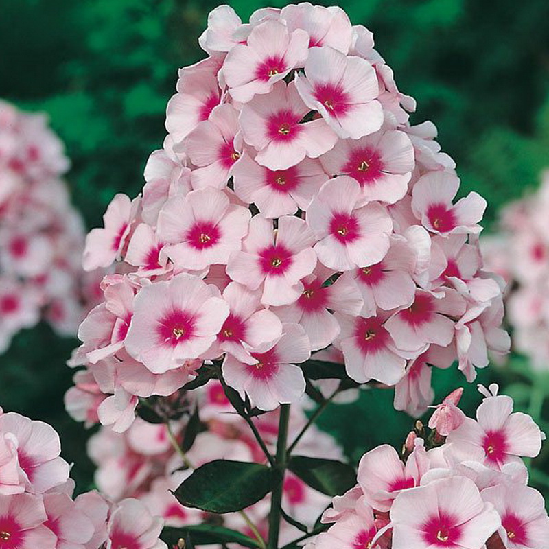 Флокс метельчатый Брайт Айс вырастает до 80 см и красиво цветет в июле-августе. В это время компактные кусты покрываются плотными соцветиями, состоящими из многочисленных светло-розовых цветочков с карминным центром. Этот сорт используется для создания смешанных посадок и внесения яркого акцента в однообразные зеленые массивы.