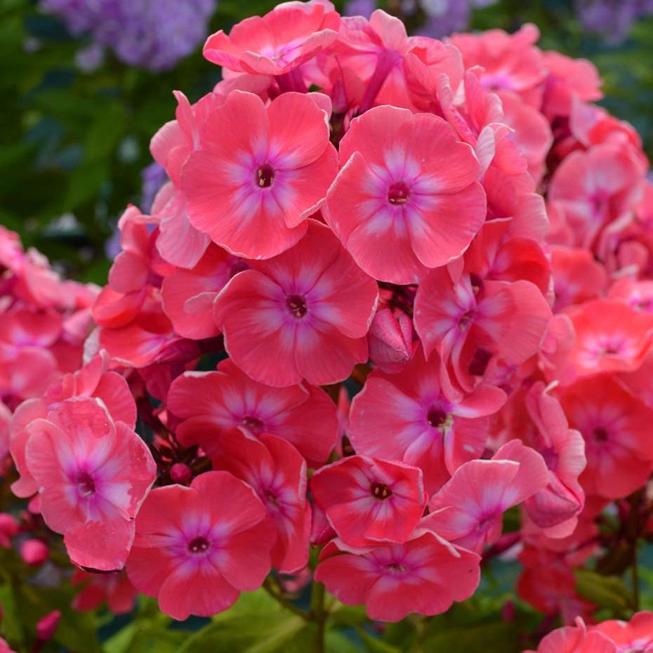 - Характеристики Куст компактный с прочными, толстыми стеблями. Соцветия овально-конические, пышные. Цветки диаметром 4,5 см, лососево-розовые с лучистым белым центром и пурпурным колечком. Срок цветения средний.
