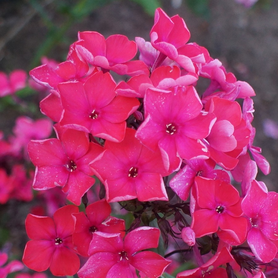 Флокс метельчатый Набат - карминово-красный с киноварным оттенком, очень яркий, цветок округлый, край лепестка волнистый. Соцветие большое, дробно-коническое, ветвистое. Не выгорает. Флокс метельчатый Набат устойчив к неблагоприятным погодным условиям. Высота растения - 80 см.