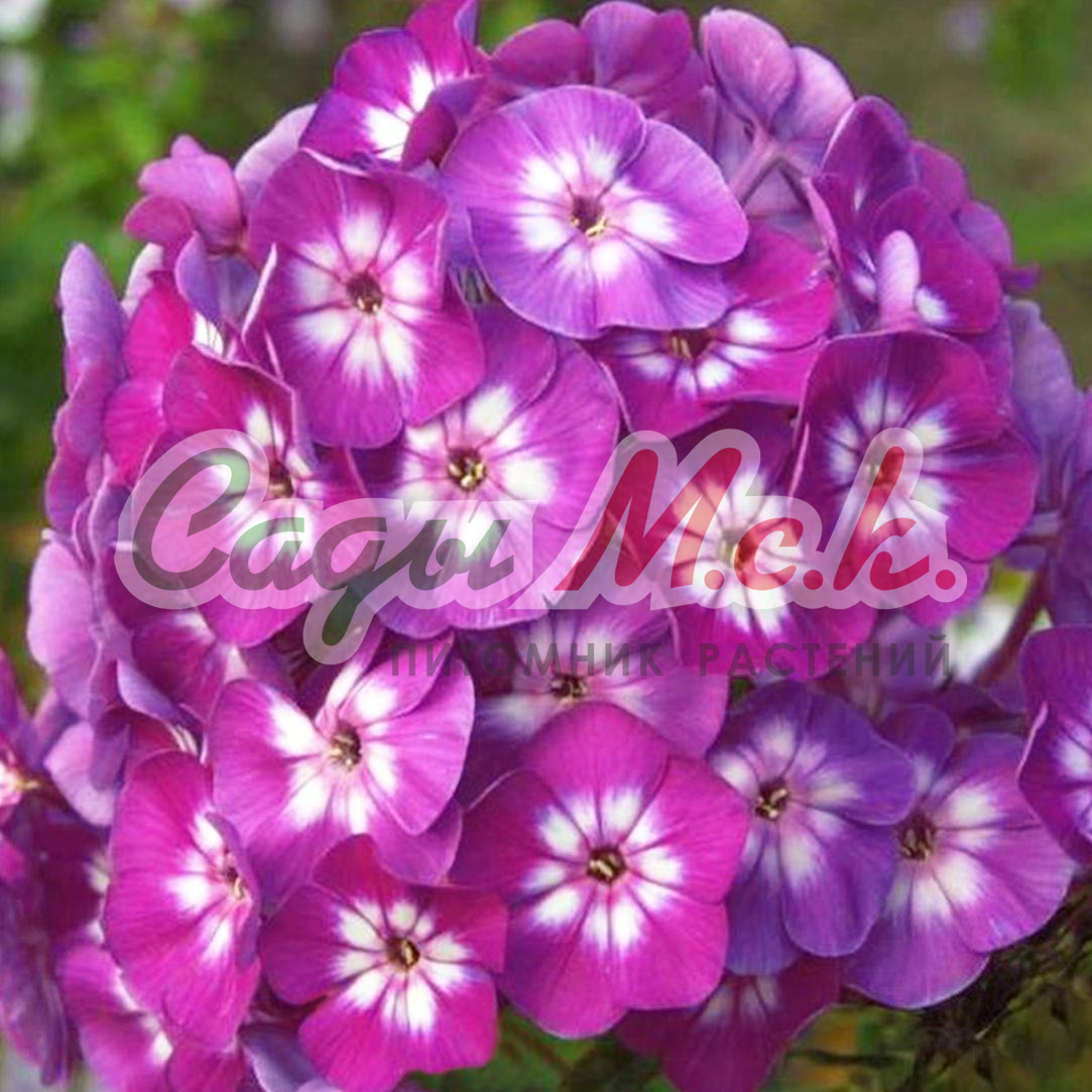 Флокс метельчатый Виктория - Роскошный пурпур цветков не боится ни росы, ни прямых солнечных лучей. Возможно легкое просветление в центре. Срок цветения - ранний. Цветок до 4,0 см. Высота Флокса метельчатого Виктория - 75-85 см.