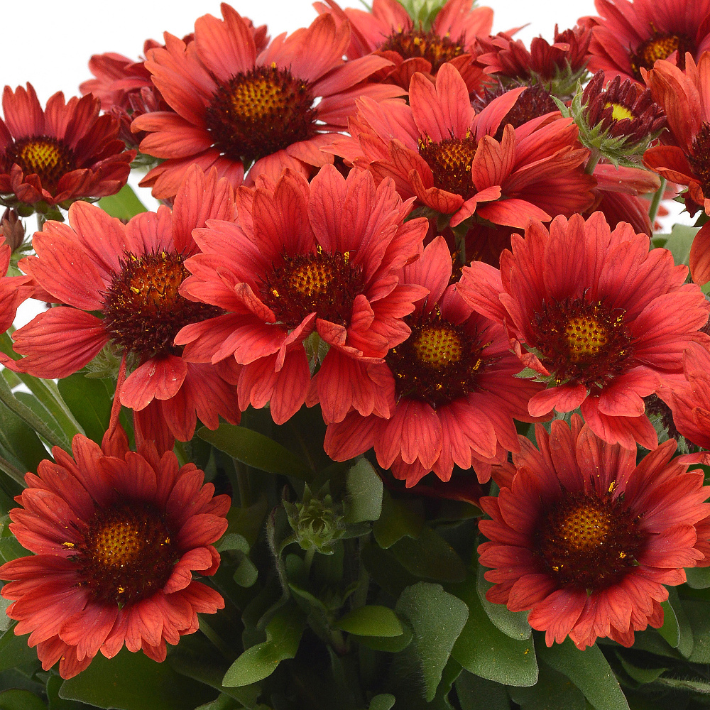 Гайллардия гибридная Меза Ред (Gaillardia hybrida) вырастает в виде эффектных, компактных кустов высотой 45 см. Главным украшением которых, являются крупные махровые цветы темно-красного цвета. В диаметре они равны 9-10 см. Листья опушенные, ланцетовидные. Стебли прямые, часто не устойчивы к сильным ветрам. Чтобы избежать подвязки, целесообразно высаживать многолетник в группе с высокими растениями, имеющими крепкие стебли, например с ирисами. Гайллардия гибридная Меза Ред прекрасно сочетается со спаржей, ромашкой и нивяником. Используется для оформления рабаток, цветников и альпийских горок. Гайллардия гибридная Меза Ред не требует большого ухода, а яркое буйное цветение продлится с июня по август.