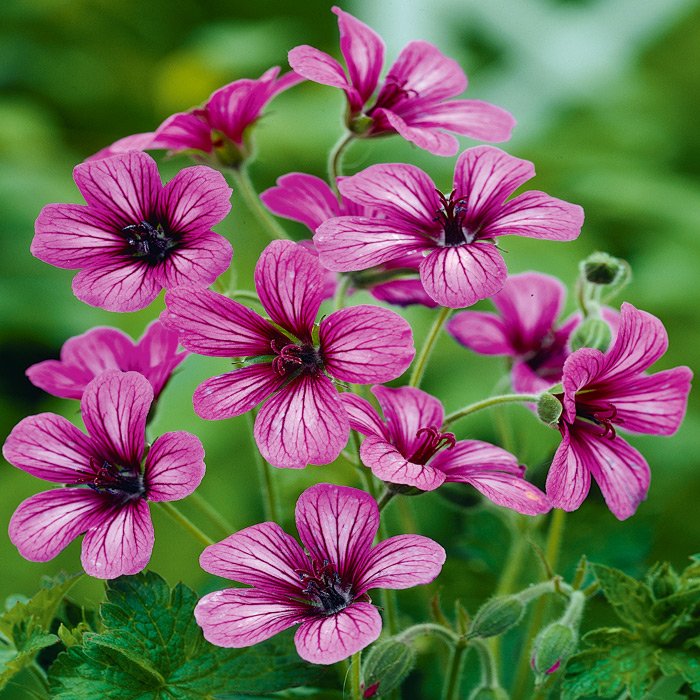 Герань гибридная Сью Круг (Geranium hybrid Sue Crug) хорошо подойдет для ковровых посадок, замещения газонов и имитации луговых цветов в ландшафтных проектах. Многолетнее невысокое растение, около 40 см, хорошо приживается на глинистых почвах, освещенных и полутеневых местах, зимует в грунте 4 зоны морозостойкости без укрытия. Чашевидные пятилепестковые цветы диаметром около 4 см окрашены светло-сиреневым нежным оттенком с четкими продольными темно-бордовыми прожилками. Период цветения – июль-сентябрь. Герань гибридная Сью Круг прекрасно растет на каменистых плотных почвах и крутых склонах.