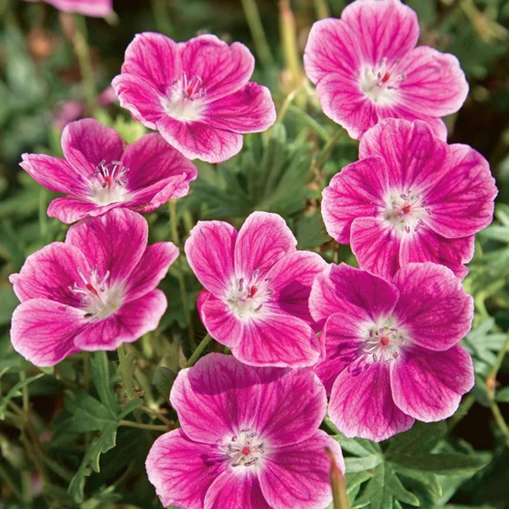Герань кроваво-красная Элке (Geranium sanguineum Elke) предпочитает хорошо дренированные богатые минералами и питательными веществами почвы, освещенные места в открытом грунте. Многолетние растения 25 см в высоту отлично подойдут для миксбордеров, вертикальных ярусных посадок и бордюрных украшений. Темно-розовые цветки диаметром 3,5 см с расплывчатой белой каймой по краю и частой сеткой малиновых прожилок появляются в июне и обильно украшают кусты до конца августа. Устойчивость к холодам 4 зоны морозостойкости позволяет зимовать Герани кроваво-красной Элке в грунте под снегом или легким укрытием.