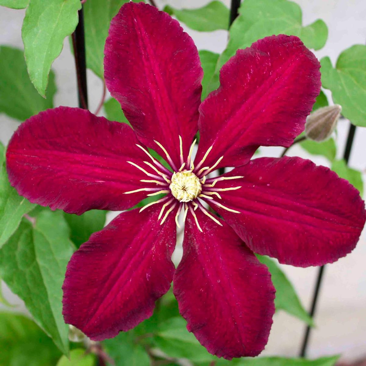 Клематис крупноцветковый Ниобе ‒ один из самых популярных сортов для оформления садов, парков и зон отдыха. Это рослая лиана, которая может достигать до 2,5 метров, неприхотливая к условиям содержания. Клематис крупноцветковый Ниобе предпочитает богатый, плодородный грунт, легко переносит перепады температур, может расти на солнце и в полутени. Цветы клематиса очень крупные, до 12‒15 сантиметров в диаметре. Их лепестки темно-фиолетовые, махровые, с необычными ажурными краями. За один сезон можно ожидать два периода цветения: в мае и начале лета на старых побегах, а затем в августе и сентябре ‒ на новой лозе.