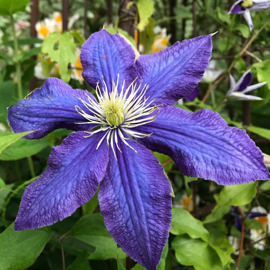 Клематис крупноцветковый Рапсоди (Klematis Krupnotsvetkovyy Rapsodi) станет настоящим украшением дачного участка или сада. Это высокое (до 1,5—2 метров) декоративное растение, которое предпочитает хорошо освещенные участки и может переносить зиму в открытом грунте, при условии укрытия. Особенную декоративную ценность клематис приобретает в теплое время года. Период цветения Клематиса крупноцветкового Рапсоди продолжается с июня по сентябрь. В этот период на его побегах образуются крупные (до 14 сантиметров в диаметре) цветы с яркими синими лепестками и контрастными желтыми тычинками. Растение популярно для оформления участков, арок и цветочных массивов. Тип обрезки для данного сорта - 3 (сильная)