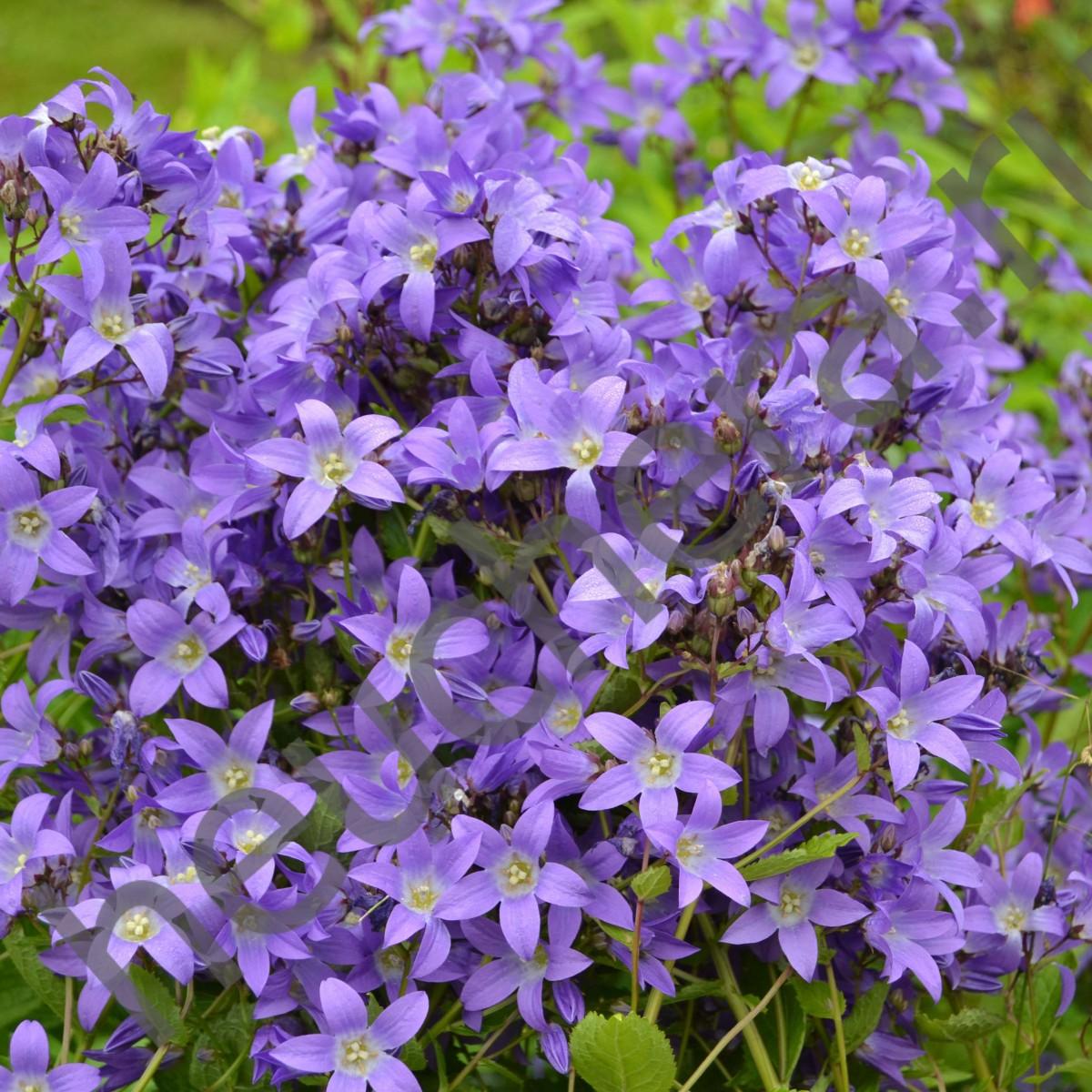 Колокольчик молочноцветковый Пуф (Pouffe) - прекрасное почвопокровное растение, образующее пышные цветущие куртины. Высота стеблей всего 30 сантиметров. Цветение длительное и обильное, бутонов так много, что под ними часто не видно листвы. Цвет голубой, в центре бутона выделяются жёлтые тычинки. Колокольчик высаживают на альпийскую горку, в рокарий, группами в составе смешанных цветников. Ландшафтные дизайнеры практикуют высадку многолетника для имитации водного пространства на участке. Колокольчик молочноцветковый Пуф неприхотлив и зимостоек.