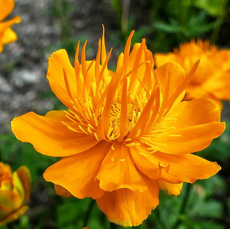 Купальница китайская относится к виду луговые растения. Распространены в самых разных природных зонах. Высота Купальницы китайской - 80-100 см. Стебли прямые, не ветвистые или ветвящиеся в верхней части. Листья темно-зеленые, блестящие, пальчато-раздельные. Красивы в течение всего лета, в любую погоду. Цветки очень эффектные: ярко-оранжевые, крупные, до 5 см в диаметре.