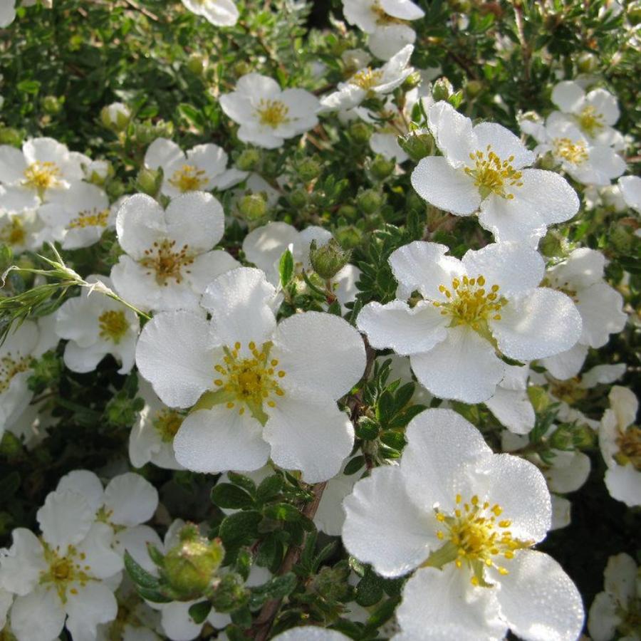 Корни лапчатки Abbotswood являются лучшим белоцветковым сортом. Крупный и широкий куст 1,2 – 1,3 метра в высоту . Плотная, густая крона обеспечивается густорастущей, сложной листвой. Мелкие 3см листья летом покрываются как бы пушком, приобретая серебристый отблеск Небольшие цветы, не более 2,5 см, белоснежные и плотно укрывающие крону, обычно собранные в небольшие кисточки. Расцветая в самом начале лета, цветы лапчатки Abbotswood будут радовать взор до сентября. Слишком высоких требований к почве крупномер Abbotswood не предъявляет, главное, чтобы она всегда была влажной, легкой и плодородной. Тяжело переносит только сильную жару и засуху.