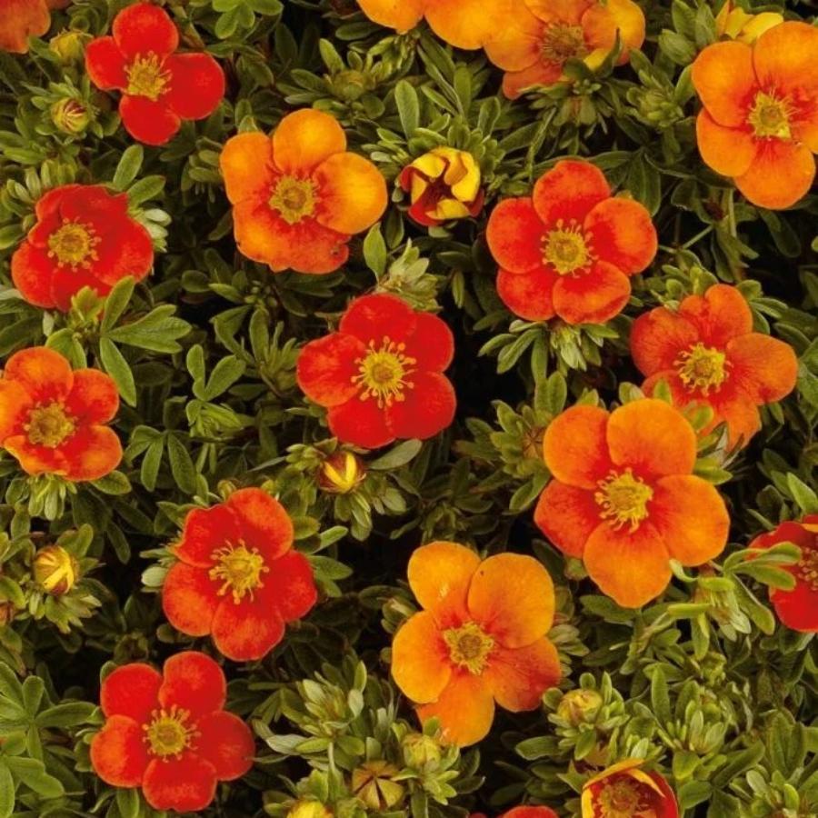 Лапчатка Sunset - сорт лапчатки с ярко-оранжевыми цветками. Куст высотой до 0,6 м. Крона подушковидная. Листья мелкие, темно-зеленые, сложные. Цветение очень обильное, цветки средних размеров, ярко-оранжевого цвета. Цветение начинается в середине июня и длится до наступления устойчивых заморозков в начале октября.