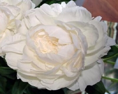 Тревянистый пион Elsa Sass - цветок белый с кремовым оттенком и желтыми тычинками, крупный, махровый, розовидный, диаметр цветка 15 - 17 см, обладает ароматом, хорошо подходит для срезки. Цветение очень позднее, обильное, продолжительное.<br>