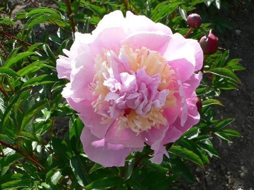 Травянистый пион Philomele имеет внешние крупные лепестки сиренево-розовые, корона из желтых петалодий, светлеющих в процессе цветения до кремовых, центр из розовых лепестков, часто с красными отметинами. Листья - темно-зеленые. Куст высокий, быстро разрастается, стебли сильные. Диаметр цветка 16см.<br>