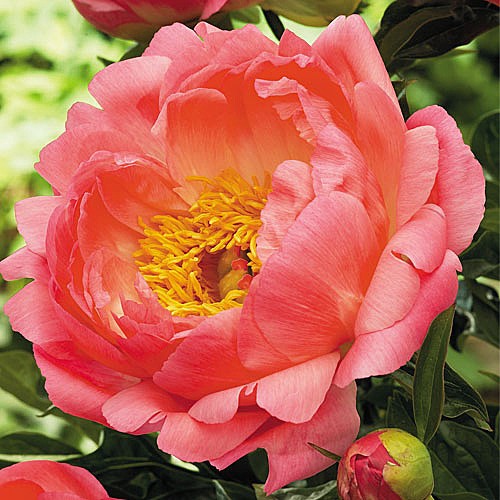 Саженцы пиона Coral Sunset выбирают ценители красоты. Удивительный цветок лососево-оранжевого окраса, бутоны которого со временем немного выгорают, изменяя оттенок на более светлый. На одном кустарнике могут быть бутоны разного цвета с великолепным ароматом. Сорт отличается ранним периодом цветения.