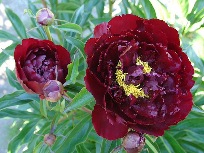 Саженцы пиона Madame Gaudichau – восхитительное украшение клумбы. Махровый пион, который нельзя не заметить. Волнистые лепестки крупного цветка рубинного окраса кажутся бархатными. Бутоны источают чарующий аромат, который только подчеркивает роскошь цветка. Кустарник отличается поздним периодом цветения.