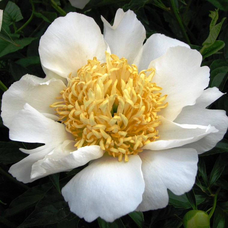 Саженцы пиона Moon of Nippon используют для выращивания прекрасных цветов для срезки. Растение порадует уникальными соцветиями: внешние лепестки имеют белоснежный окрас с легким зеленоватым отсветом. Центр бутона украшают желтые стаминодии. Цветение приходится на средний период, продолжительно.