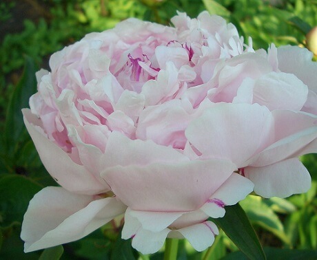 Травянистый пион Nick Sheylor махровый, розовидный. Крупные, густомахровые соцветия окрашены в бело-розовый цвет со светло-желтым отливом у основания лепестков. Аромат слабый и приятный. Куст раскидистый, среднеоблиственный, разрастается медленно. Стебли прямые и прочные. Цветет этот пион с середины июня в течение 8-10 дней. Высота 70 см. Размер цветка 18 см. Поздний срок цветения.