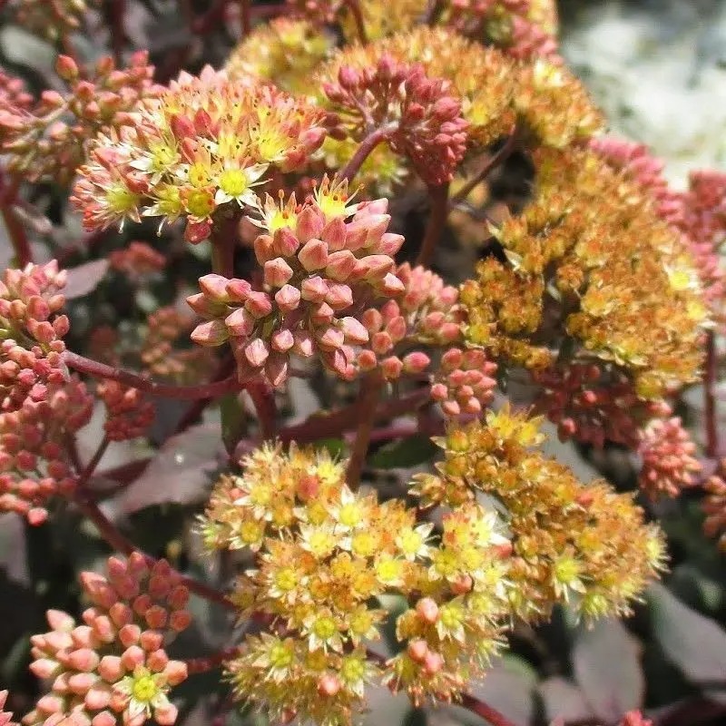 Седум (очиток) гибридный Йеллоу Ксенокс - растение высотой до 40 см. Стебли прямостоячие, листья зелено-фиолетовые, цветки кремово-желтые. Цветет Седум гибридный Йеллоу Ксенокс в сентябре-октябре 35-40 дней.