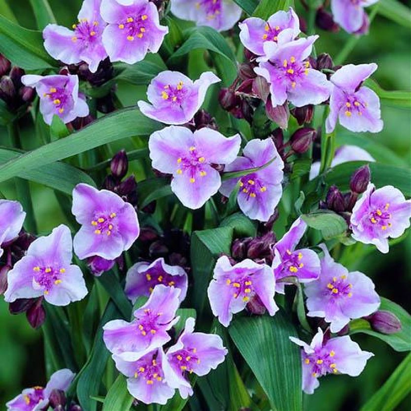 Традесканция Андерсона Билберри Айс (Tradescantia) создаст на вашем участке отличный уголок для отдыха. Это растение-многолетник понравится любому садоводу. У него темно-зеленая листва на длинных стеблях, куст достигает в высоту 50 см. Цветет фиолетовыми, синими, голубыми или белыми трехлепестковыми цветочками, собранными в простых соцветьях, редко, могут быть и одиночные. Tradescantia Bilberry Ice будет радовать цветением с самого начала лета и до конца сезона. Каждый цветочек раскроется лишь на один день, но в соцветии их очень много и они обеспечат непрерывное цветение. Для посадки Традесканции Андерсона Билберри Айс требуется увлажненная гумусная почва.