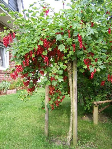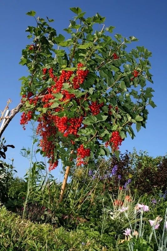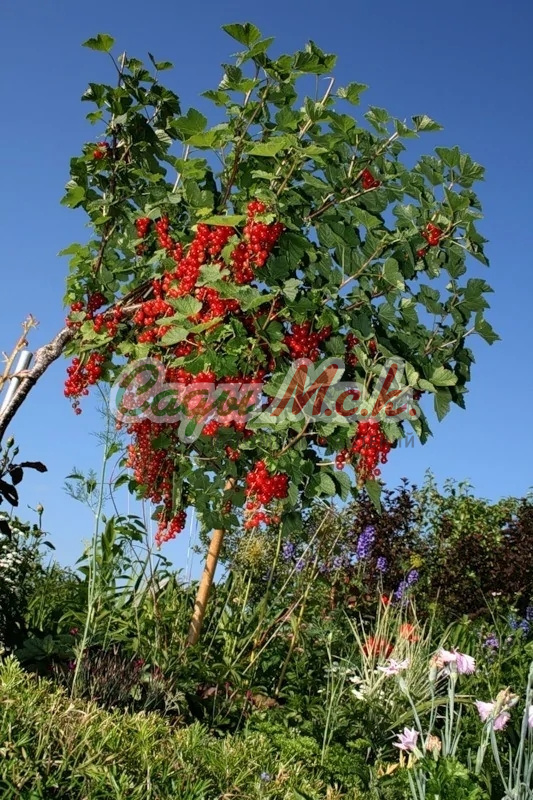 Штамбовая форма очень популярна в европейских странах, т.к. при этой форме выращивания улучшается освещенность смородины, что способствует повышению урожайности, а ягоды становятся ярче, крупнее, вкуснее. К тому же легче обрабатывать почву, собирать урожай; в приствольных кругах хорошо смотрятся зелень и однолетние цветы. Необычные деревца в пору плодоношения украсят любой ландшафт: их можно разместить возле дома или беседки, высадить вдоль дорожки. До трехлетнего возраста при весенней обрезке штамба все ветви укорачивают примерно наполовину, придавая кроне округлую или слегка свисающую форму. Регулярно нужно удалять побеги возобновления, идущие от основания стволика, а также все боковые ветвления на штамбе. Начиная с четвертого года, ветви больше не укорачивают, удаляя только лишние (больные, поникающие, слабые). На восьмой-десятый год проводят омолаживающую обрезку кроны, полностью вырезая старые ветви с темной корой. Штамбовые деревья лучше высаживать с севера на юг – для лучшего освещения. Штамбовые деревья, высаженные рядами, создадут красивую шпалеру, удобную для сбора ягод и ухода за посадками.