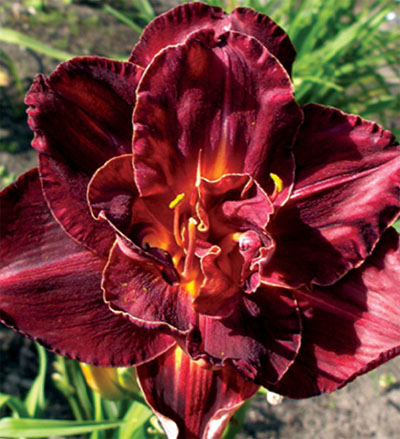 Саженцы гибридного лилейника Burgundy Love  – многолетники с крупными цветками. Тёмно-бордовые бархатные лепестки, жёлтая серединка и тонкая белая окантовка.  Диаметр соцветий 15 см. На одном кусте множество бутонов, которые создают непрерывное расцветание. Высота растения – полметра. С июня по июль крупномер  Burgundу Lоvе радует своими цветами. Условия высаживания и ухода:  перед посадкой хорошо удобрить землю; подобрать светлое место, подойдёт и полутёмное;полив умеренный, особенно при цветении.