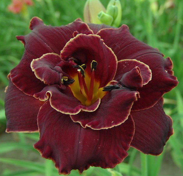 Саженцы лилейника Purplеliсiоus во время цветения приносят шестилепестковый цветок густого бордового колера с зелёным горлом. Белая гофрированная кайма по краю лепестков придает ему нарядность и очарование. Кусты достигают высоты 70 см, а его крупные цветы до 17 см в диаметре, могут стать достойным украшением одиночных и композиционных посадок. Начало цветения крупномера рurрlеliсiоus приходится на первые летние месяцы, повторное – к концу лета. Тетраплоид. Этот сорт прекрасно растет на освещаемых и прогреваемых солнцем участках. Но при этом холодоустойчив и неприхотлив к составу почвы. При наличии дренажа и достаточного полива очень быстро разрастается.