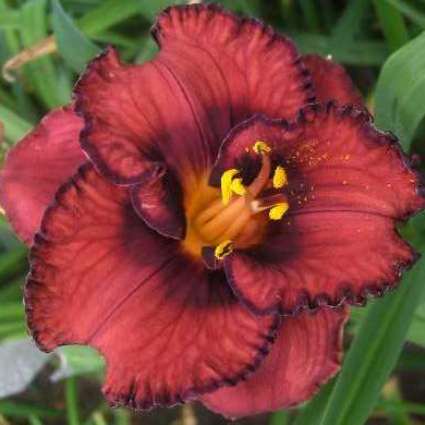 Лилейник Berrylicious - травянистый корневищный многолетник.  Его высота 60 см, диаметр куста до 50 см. Цветок винно-красный, крупный, с фиолетовым центром и такого же цвета гофрированной каймой. Горло желтое. Диаметр цветка -  14 см. Время цветения - июль-август. Сорт цветет повторно. Предпочитает солнце и полутень.