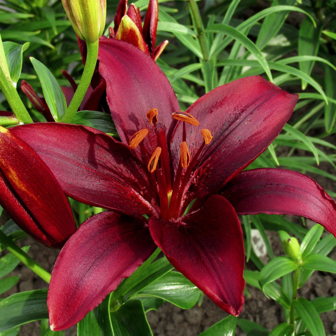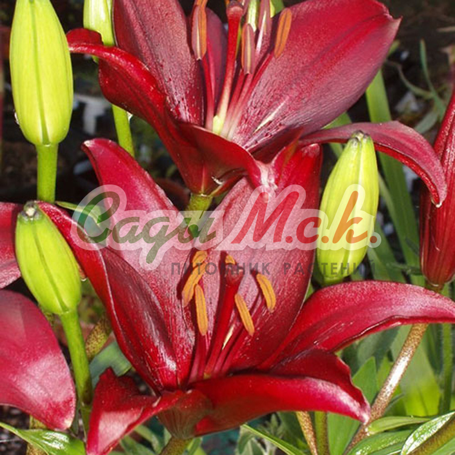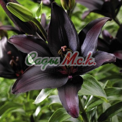 Лилия азиатская Блэк Лист - одна из самых тёмных лилий. Крупные воронковидные цветки обладают неповторимым шармом, благодаря атласному преливу черно-красных лепестков. Величиственный образ цветков дополняют изящные длинные стебли и глянец ярко-зеленых листьев. Высота Лилиb азиатскjq Блэк Лист 80 см. Кол-во бутонов на стебле- 3-6 шт. Цветение во второй половине июня-июле.