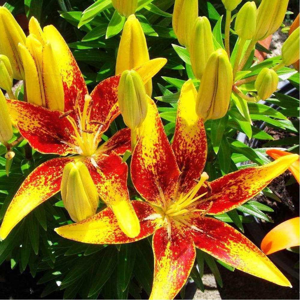Луковицы Лилии азиатской Тайни Сенсейшн (Lilium Tiny Sensation) ― сорт, предназначенный не только для садоводов, но и для тех, у кого нет собственных земельных участков. Компактное растение не превышает в высоту 45 см, но при этом радует крупными (до 16 см в диаметре) желтыми цветками с лепестками, покрытыми плотным густым крапом насыщенно-винного цвета. При выращивании в открытом грунте Лилия азиатская горшечная Тайни Сенсейшн может занять центр миксбордера или цветочной композиции, став главным цветовым пятном при удачном подборе «соседей» по клумбе.