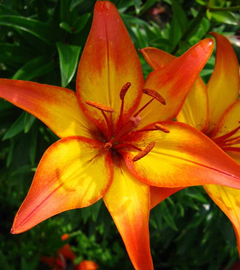 Лилия Cancun - гибридное растение азиатской группы, обладающее яркими цветками, на лепестках которых насыщенный желтый цвет гармонично переходит в ярко-красный. Зацветает с середины лета. При высоте стебля 95-105 сантиметров красиво выделяется и привлекает к себе внимание в садах или клумбах.