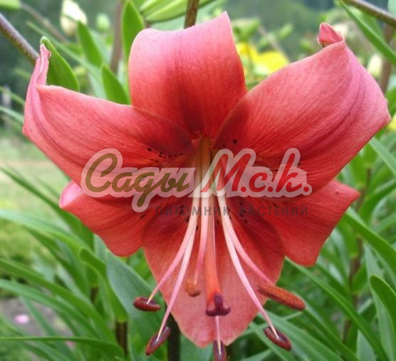 Лилия Tinos - многолетнее луковичное растение с прямыми и крепкими сильно облиственными стеблями. Цветки диаметром до 16 см, чашевидные, бело кремовые с двухцветным пятном на каждом лепестке: оранжево-жёлтым в середине и малиново-красно-оранжевым у основания. Соцветия состоят из 6-7 направленных вверх цветков. Высота растения 100-130 см. Очень морозостойкий и неприхотливый сорт. Период цветения - июль.