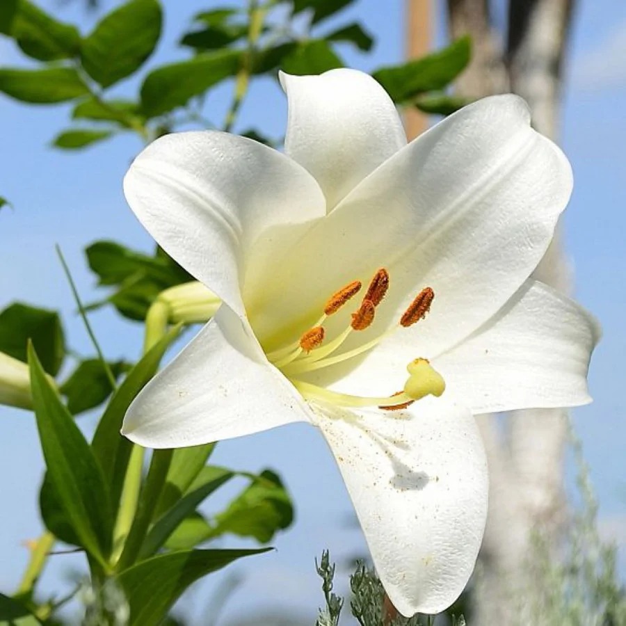 Лилия ЛО-гибрид Вайт Триумф (Lilium LO-hybrid White Triumph) наполнит цветник настоящей восточной экзотикой. Высокие кусты, с темно-зеленой листвой очень выгодно подчеркивают белоснежные, практически восковые цветы с зеленоватой серединкой. Края лепестков сдержанно загнуты к стеблю. Аромат вызовет настоящее наслаждение у любителей лилейных.