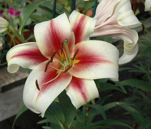 Лилия Albany - крупный цветок со светло-желтыми лепесткам. У основания лепестков пролягает насыщенно-красная полоса. Цветение наблюдается в июле, высота растения достигает 90-110 см. Сорт зимостойкий.