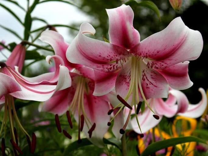 Лилия Anastasia - экзотический сорт лилии, обладает крупными и необыкновенными цветками. Закрученные вверх лепестки, волнообразные белые края и нежно розовая окраска с малиновыми крапинками придают этой лилии незаурядного очарования. В холодную погоду окрас цветков наблюдается более насыщенный. Сорт отличается высоким прочным кустом до метра у высоту и больше. Срок цветения наступает в августе. Цветки достигают до 30 см в диаметре. Цветы порадуют также приятным сладким ароматом. Сорт отлично подходит для выращивания в контейнерах, в цветниках и для срезки.