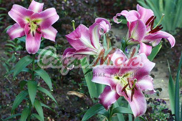 Луковицы лилии ОТ-гибрид Флэшпоинт (Lilium OT-hybrids Flashpoint) хорошо впишутся в сад с обилием зелени. В августе начинают раскрывать первые бутоны крупных, до 18 см в диаметре, ярких цветов. Окраска лепестков делает это растение поистине королевским. Темно-розовые винного оттенка лепестки вырастают из нежно-зеленых звездочек основания и заканчиваются чисто-белыми закручивающимися от центра кончиками. Пыльники чуть темнее середины лепестков. Лилия ОТ-гибрид Флэшпоинт отличается прочностью стеблей и обилием бутонов на каждом цветоносе.