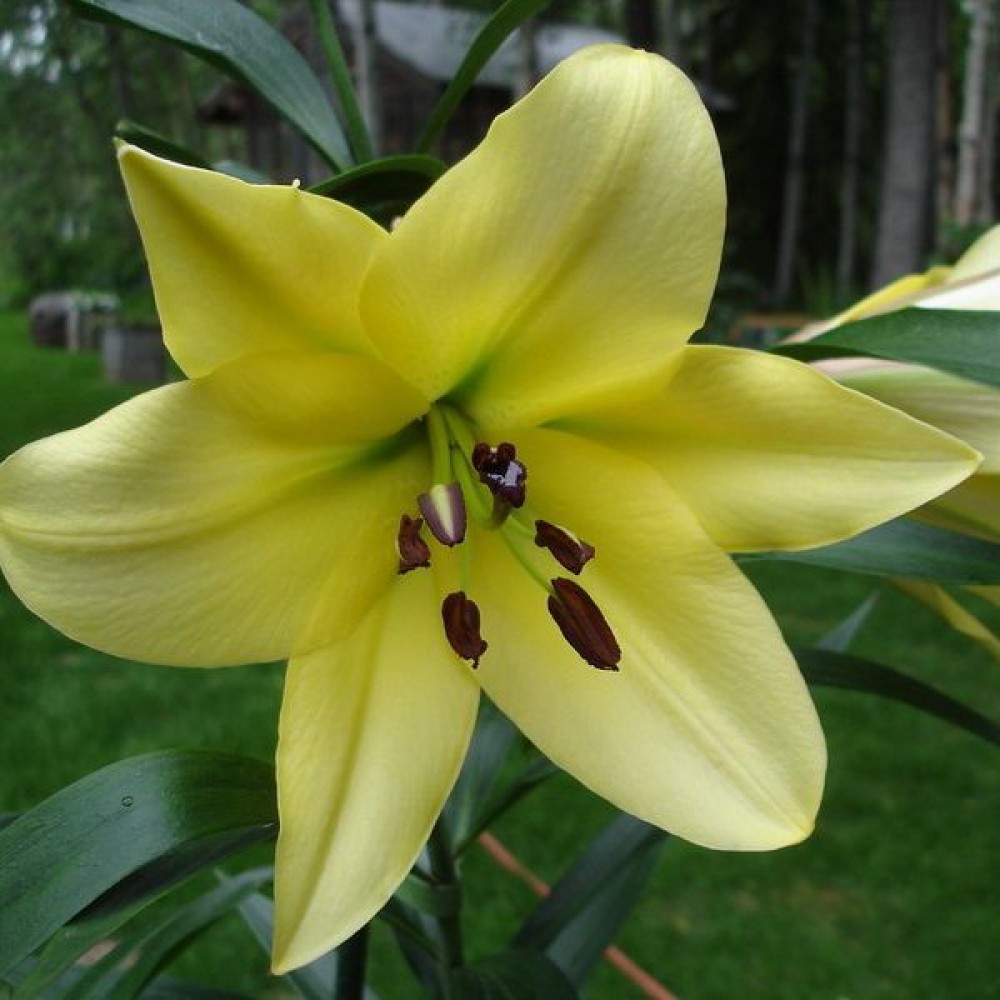 Луковицы лилии ОТ-гибрид Лесото (Lilium OT-hybrid Lesotho) к середине лета принесут в сады и клумбы крупные, до 22 см в диаметре, яркие желтые цветы. На основании лепестка есть легкий зеленоватый оттенок и с обратной стороны каждого – узкий фиолетовый мазок, в остальном окрас лепестков чистый, без крапа и примесей. В период цветения фиолетовые блики будут видны, так как головки раскрываются вниз и в стороны от цветоноса. Пыльники крупные, контрастные, кирпично-коричневого цвета. Лилия ОТ-гибрид Лесото меняет высоту с годами и на 3-5 год достигает 150 см. Декоративный многолетник трепетно относится к освещенности места посадки и требует плодородных влажных почв с хорошим дренажем.