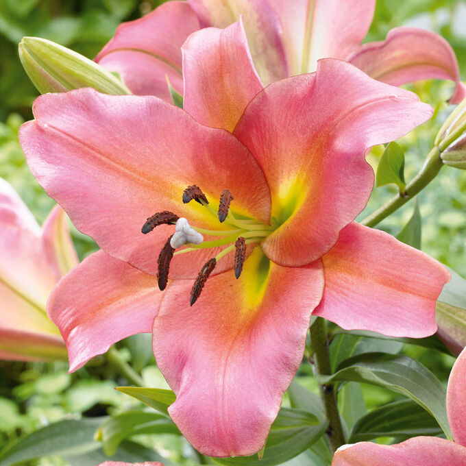 Лилия ОТ-гибрид Он Стейдж (Lilium OT-hybrids On Stage) может служить не только шикарным украшением сада, но в виду своей транспортабельности и устойчивого аромата позволяют организовать срезку для оформления букетных композиций. Прежде чем приступить к высадке, учитывайте ландшафтные возможности участка. Стебли у Лилии ОТ-гибрида Он Стейдж высокие с ярко-розовыми или бледно-желтыми цветками воронковидной формы, лепестки которых у горловины обозначены желтыми оттенками. Для поддержания обильного цветоноса раз в 5-6 лет проводите пересадку луковиц с обновлением посадочного материала на более молодые экземпляры.
