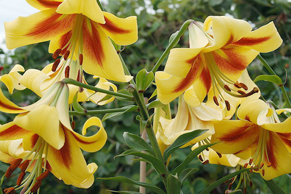 Лилия Robert Swanson - ОТ-гибридное многолетнее луковичное растение. Сорт обладает легким приятным ароматом, поэтому это лучший выбор для тех, кто не любит сильные запахи. Это одна из самых красивых лилий, ей присущи бронзово-красные лепестки с золотой окантовкой персикового и розового оттенков. Цветки крупные, диаметром до 17 см, направленные в сторону и вниз.