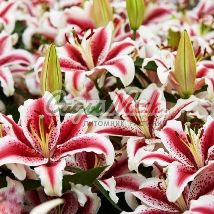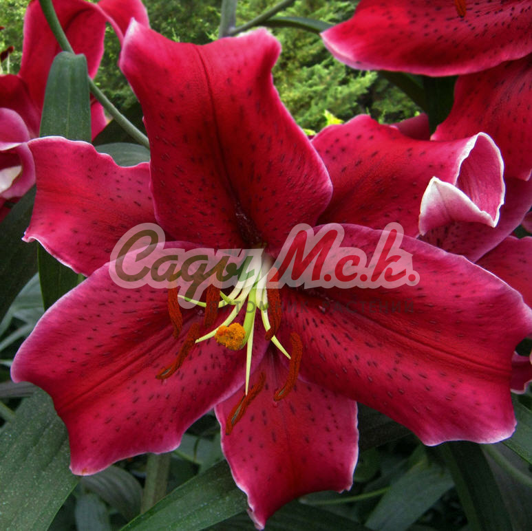 Лилия восточная "Бомбастик" (Bombastic) - это редкая красавица в восточном семействе гибридов с большим цветком. От нее сложно оторвать взгляд: бутоны благородного насыщенно-бордового оттенка, крупные. Тычинки — темно-вишневые с оранжево-медовым окрасом пыльника. В каждом соцветии по несколько бутонов. Благоприятные условия способствуют разрастанию цветка до 130 см в высоту. Обладает приятным ароматом. Изысканная красота Лилии восточной Бомбастик (Bombastic) по настоящему ценится флористами. Поэтому их часто покупают или выращивают для шикарных букетов на срезку или для придания декоративности любым насаждениям и клумбам.