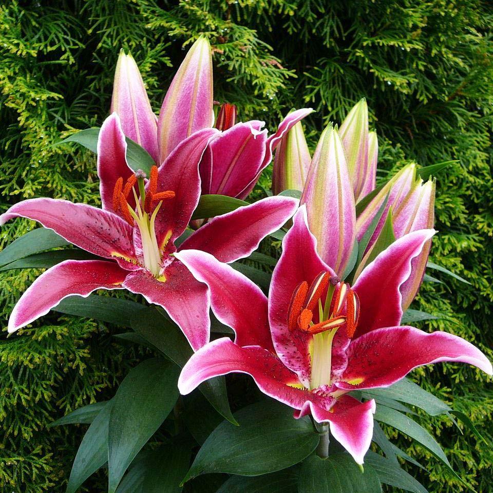 Луковицы лилии восточной горшечной Маньи-Кур ― настоящие аристократы среди восточных сортов. Из-за их относительно небольших размеров они достаточно часто выращиваются как горшечная культура. С их помощью можно красиво оформить террасу или патио. Очень крупные цветки с диаметром до 15 сантиметров окрашены в насыщенный глубокий розовый цвет, который при определенном освещении кажется бордовым. Очарования цветкам добавляет изящный тонкий белый кант, оформляющий края лепестков, а также более темный бордовый крап и ярко-оранжевые пыльники. Лилия восточная горшечная Маньи-Кур - это эффектное растение с долгим сроком цветения не останется незамеченным и в открытом грунте.