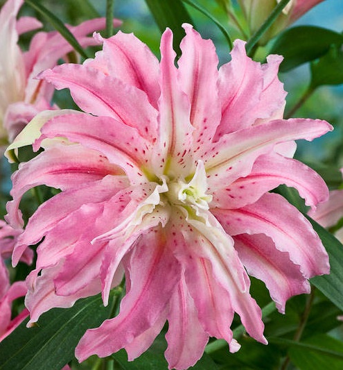 Лилия Broken Heart - махровый цветок. Это бело-розовая лилия с темно-розовой узкой полосой вдоль лепестка. Наружние лепестки, как правило, более розовые, внутренние бело-желтоватые. На внутренних лепестках заметен редкий красно-розовый крап. Тычинок нет, они в процессе селекции превратились в дополнительные лепестки. Сорт обладает приятным нежным ароматом. В соцветии 5-7 бутонов (зависит от возраста растения). Цветки направлены в стороны. Диаметр цветка 15-20 см. Высота стебля 90 см. Цветение наступает через 14-17 недель.