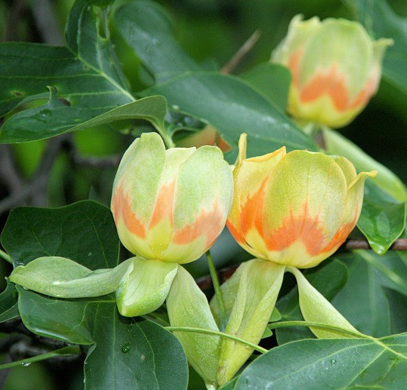 Лириодендрон Roothaan -  дерево высотой  25 метров. Крона высокая, у молодых деревьев пирамидальная, с возрастом приобретает более овальные очертания. Ствол прямой, массивный. Кора молодых деревьев гладкая, светло-серо-зелёная, у более зрелых неровная, с белыми ромбовидными бороздками. Листья очередные, простые, с пальчатым жилкованием, широкие, зелёные. Цветки напоминают бутон тюльпана, около 6 см в длину, двуполые, с бледно-зелёно-жёлтыми лепестками и оранжевым венчиком, источают аромат.