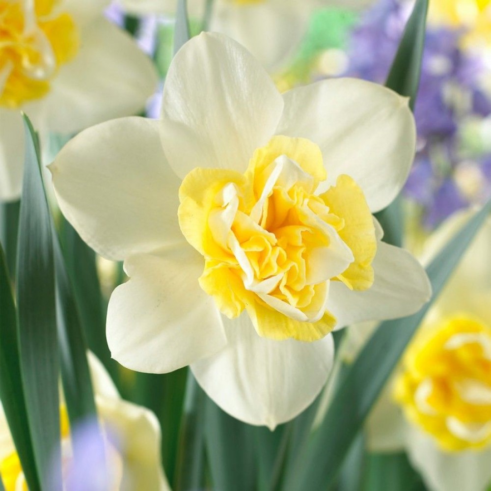 Нарцисс Попай - махровый, многолетний сорт. Цветки необычной формы, с очень приятным и насыщенным ароматом, крупного размера, белого цвета с вытянутой жёлто-белой короной. Луковицы нарциссов среднего размера, отлично приживаются при любых климатических условиях. Растение неприхотливое в выращивании, стебель прямостоячий, крепкий. Нарцисс Попай пользуется особой популярностью в декоративном садоводстве, их используют в озеленении, выращивают в открытом грунте на клумбах.