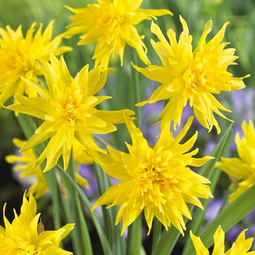Нарцисс Рип ван Винкль - ярко-желтые роскошные цветки с зелеными штрихами из-за разных по длине лепестков по виду похожи на георгины. Этот сорт хорошо адаптирован к нашим климатическим условиям и не требует особого ухода. Пересаживают Нарцисс Рип ван Винкль, когда он сильно разрастается, образуя большие гнезда луковиц, и начинает угнетать друг друга.