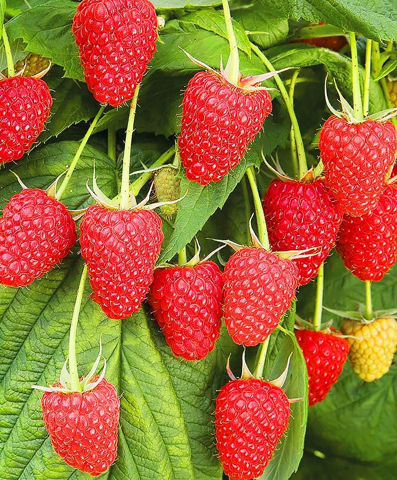 Саженцы малины ремонтантной Журавлик представляют ещё один сорт ремонтантной малины средней мощности. Куст обычно достигает от 1.7 до 2 метров в высоту, побеги толстые и прямые. По всей длине побега есть мягкие шипы.
